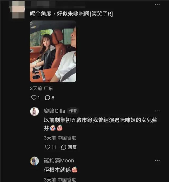 此外,有网友表示乐瞳的最新容貌撞脸朱咪咪,还在评论区留言:“这个角度,好像朱咪咪啊!”罗钧满则发挥幽默本色,回复网友:“她根本就是朱咪咪。”乐瞳见状也幽默回应道:“以前在电视剧《初五启市录》里,我曾经演过咪咪姐的女儿苏芬。”